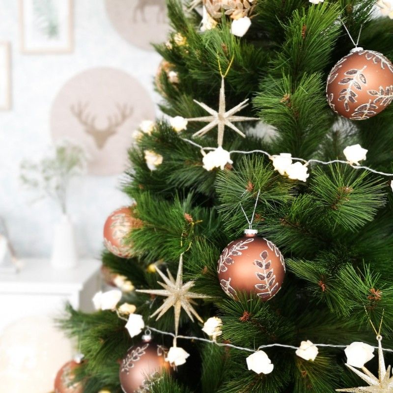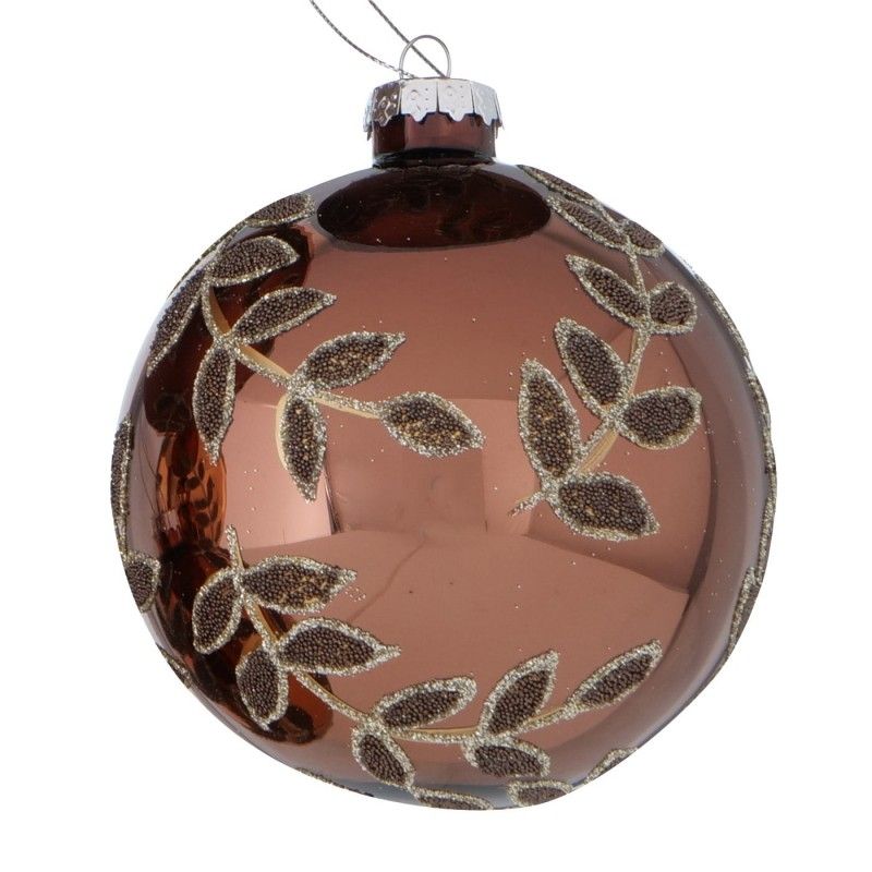 Décoration de Noël en forme de boule en verre d'un diamètre de 10 cm dans les tons marron . Choisissez parmi 6 modèles ou combinez-les pour obtenir un sapin plein de magie qui vous fera revivre cet esprit de Noël.