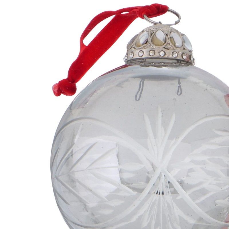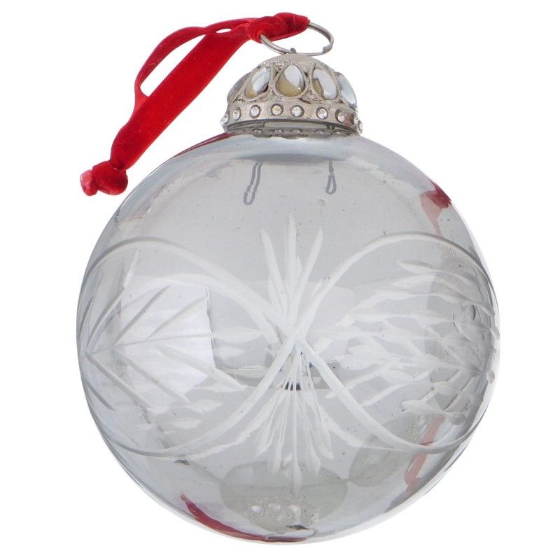 Boule de Noël en verre de 10 cm de diamètre avec nœud rouge. Décorer le sapin de Noël est quelque chose que les enfants et les adultes adorent. Profitez de ce moment en le décorant des plus belles boules. Quatre modèles au choix ou à combiner.