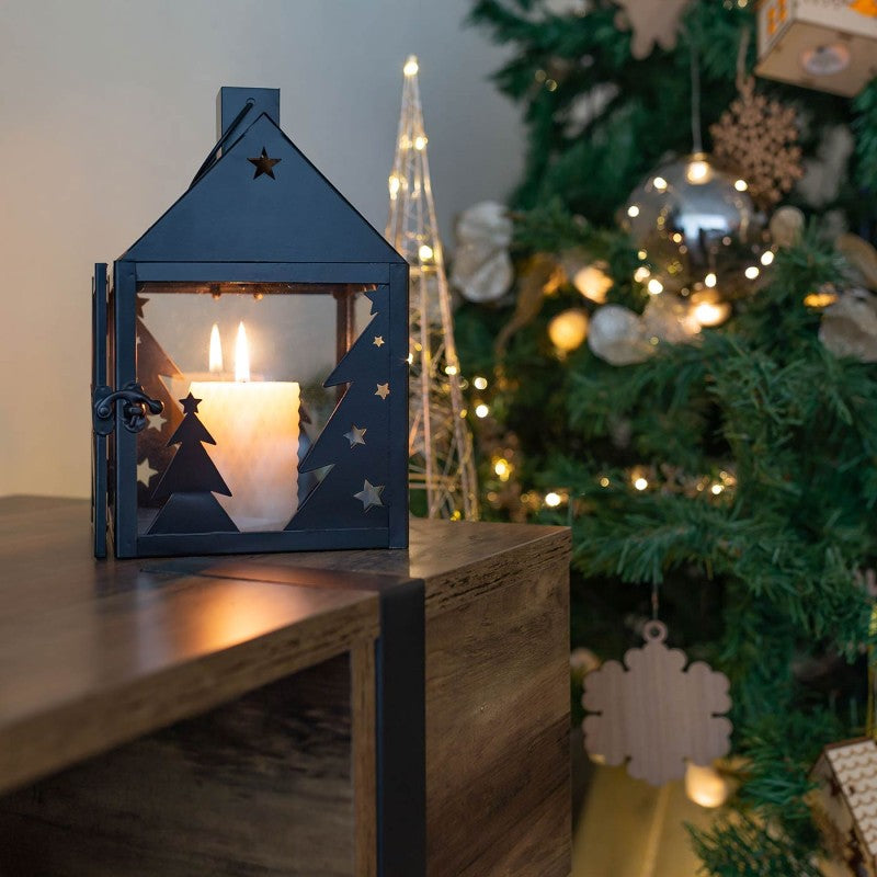 Lanterne aux motifs de Noël en métal noir et verre. Mesure 15x23 cm et disponible en deux modèles différents au choix. Les sapins et les étoiles sont un signe significatif que le moment le plus attendu par beaucoup est arrivé. Choisissez le modèle qui vous plaît le plus, ajoutez une bougie et commencez à illuminer les soirées familiales en apportant design et chaleur à votre table ou étagère.